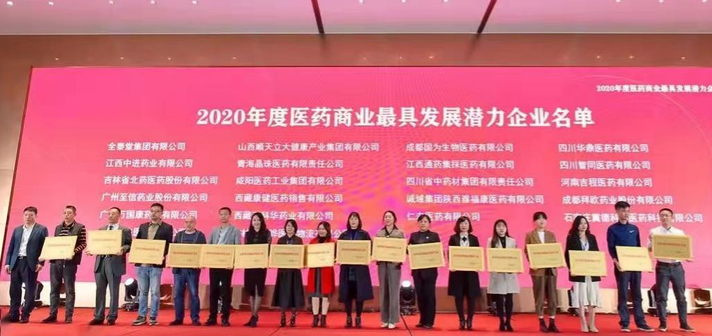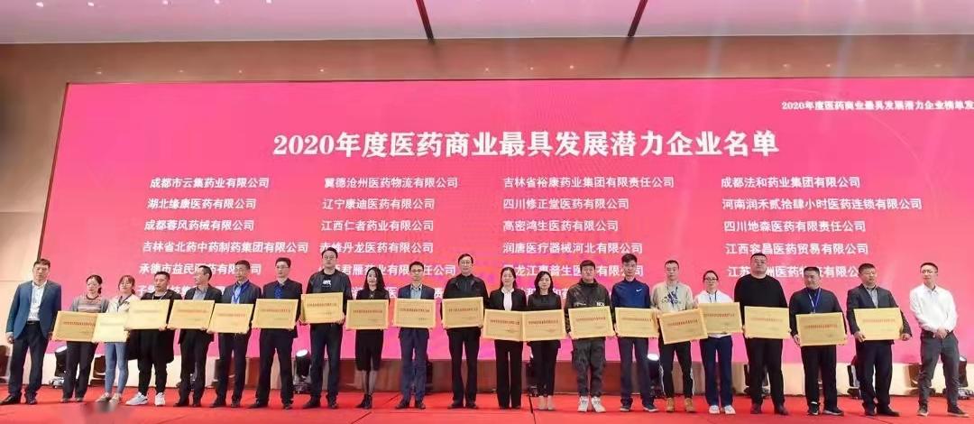 2021年10月22日,2020年度醫(yī)藥商業(yè)最具發(fā)展?jié)摿ζ髽I(yè)榜單發(fā)布會(huì)暨第三屆全國民營醫(yī)藥商業(yè)企業(yè)家高峰論壇在四川成都召開,本次大會(huì)由全國工商聯(lián)醫(yī)藥業(yè)商會(huì)醫(yī)藥商業(yè)分會(huì)主辦,以“踐行 思變”為主題,鼓勵(lì)創(chuàng)新成長,樹立標(biāo)桿,發(fā)揮榜樣作用,推舉潛力企業(yè),激勵(lì)醫(yī)藥商業(yè)企業(yè)快速發(fā)展。